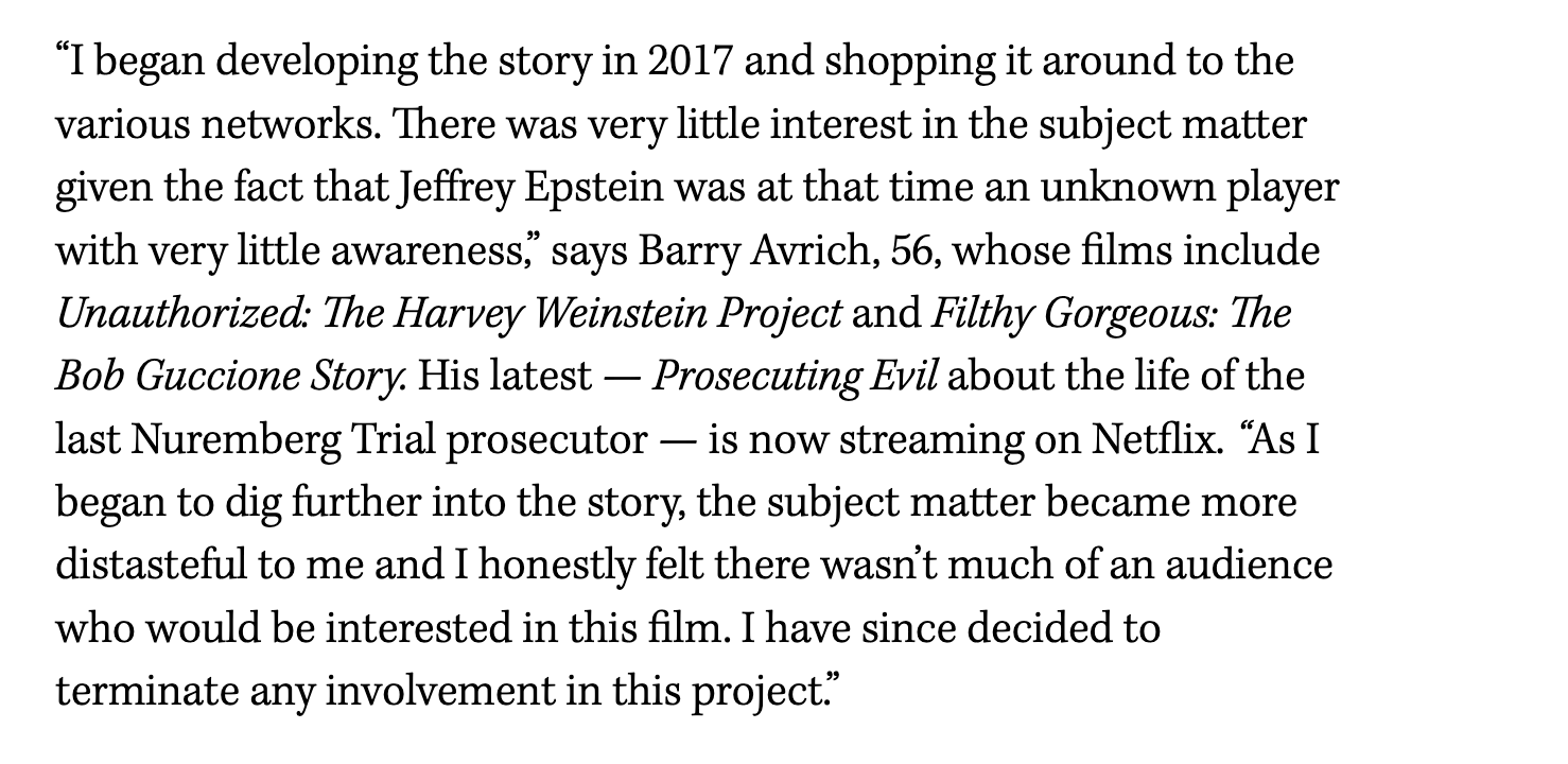 A TIFF spokesperson told Deadline that day that the film “was withdrawn by TIFF because general requirements for inclusion in the festival, and conditions that were requested when the film was initially invited, were not met, including legal clearance of all footage.” Also listed as a reason was “to protect TIFF from legal implications and to allow TIFF to manage and mitigate anticipated and known risks around the screening of a film about highly sensitive subject matter, including potential threat of significant disruption.”